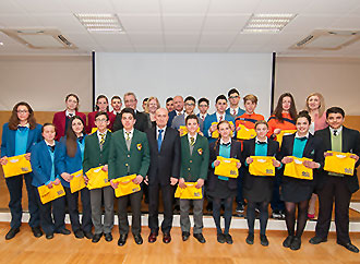 Students participating in the Go4Research together with Mr Gaetano Bugeja (Director, DLAP), Ms Desiree Scicluna Bugeja (Assistant Director, DLAP) Prof. Charles V. Sammut (Dean, Faculty of Science), Prof. Alfred Vella (Rector), Ms. G. Kathleen Hill (U.S. Ambassador for Malta) and the Hon. Evarist Bartolo (Minister for Education and Employment)